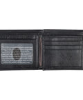 Keep your money and identity safe when you keep the Men's Ebony Black Full Grain Cowhide Leather Bifold Rhino Armor™ Wallet in your pocket.