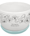 Let the Mercy White and Light Blue Planter Pot with Saucer bring new life to a hardworking plant and extra encouragement to your household or dorm room with its encouraging message. What joy can be ours if we would always remember God's endless love and mercy? This cute ceramic planter pot will remind you of this truth every time you look at it.