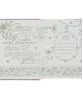 The full ESV text is included in the Metallic Pink Hardcover My Creative Bible for Girls. The fun starts right away with illustrated end pages just waiting to be colored. The presentation page allows you to add color and a name or message when it is given as a gift. The text is organized in a single-column format and flanked by two-inch-wide margins filled with fun and inspiring line drawings, lined space to record notes, and illustrated devotional panels. You can even use these margins to create your own doodles.