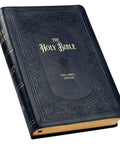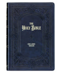 Midnight Blue Art Nouveau Framed Faux Leather Giant Print Full-size King James Version Bible with Thumb Index
