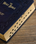 The Midnight Blue Art Nouveau Framed Faux Leather Giant Print Full-size King James Version Bible with Thumb Index is a beautiful sight on any desk and is easy to read with its larger print.