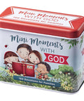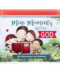The 75 double-sided cards contained in the Mini Moments with God Devotional Cards in a Tin offer families quick encouragement from God's Word wherever they go. Parents and children alike will enjoy the colorful illustrations, Bible verses, prayers, discussion topics, and fun activities found in these full color printed cards. Gather the children and reach for the Mini Moments with God Devotional Cards in a Tin for 150 quick encouragements from God's Word for the whole family. Little eyes will be thrilled by the colors and the stories penned by authors Agnes & Salem de Bezenac. The short devotionals are designed to keep little minds focused. The devotional cards are printed on durable glossy paper stock and packaged in a sturdy tin box that can withstand much handling. Each card features a Scripture verse that relates to a thoughtful message, life lesson, or conversation starter which will lead to meaningful family discussions. The numbered cards can be kept in order if desired. Allow children to pick a favorite story and return it to the tin. Replace the lid to keep the stories all safe and secure. The Mini Moments with God Devotional Cards will facilitate sweet interactions within families at the beginning of each day, mealtime, bedtime, or any time someone in the family needs quick spiritual encouragement. The Mini Moments with God Devotions can also be used in a Sunday school classroom or any other setting where there are young Christian children. Share the wonder of God's Word with your whole family with this stack of devotional cards. This unique devotional is a great gift idea for new moms or families with little children! Add a tin to a first birthday celebration or a baby shower gift.