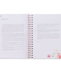 Silver wire binding complements the design and binds the journal together. A presentation page in the front of the journal lets you dedicate it to a friend through adding a name and a date. Beautiful full-color interior pages are filled with bright watercolor floral borders.