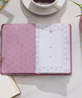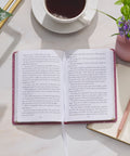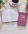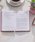 Heat-debossed daisies decorate the mauve faux leather cover of Moments of Grace for Women. White accents make the title stand out inside its beveled frame, and a white ribbon marker matches. Use it to mark your favorite stories so you can flip back to them quickly.