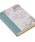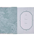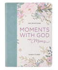Are you a tired and stressed out mom? Don't be. The Moments With God For Moms Faux Leather Daily Devotional is just what you need to take control of your life as a mother. Whether you are a first-time mom of a newborn or a seasoned mom of a teenager, Karen Stubbs knows that you need encouragement and a little time out. The back panel of the daily devotional's faux leather cover is shaded a light dusty blue, and it wraps around the spine where it meets a full-color front panel with a double topstitched seam. The front panel features a soft white shiplap background adorned with bouquets of pink flowers and soft blueish-green foliage accented with gold foil. A title is heat debossed on the spine and foiled in bright metallic pink on the front cover.