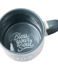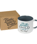 With an exterior wrapped in a bright white finish, this sturdy ceramic mug is perfect for anyone (with a favorite child). The sentiment is centered on one side in alternating teal and gray fonts. Coordinating gray handles and a gray interior with the signature Bless Your Soul imprint at the bottom of the mug finish off the design. The My Favorite Child Ceramic Coffee Mug gives a sleek design to a not-so-subtle message!