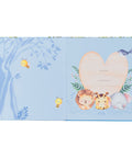 A red elastic band securely wraps around both covers, ensuring the book stays closed and your precious treasures remain safely tucked inside. The back cover showcases a lovable group of fun forest friends, and this charming theme is continued throughout the full-color printed book. Within its pages, you'll find ample space to document unforgettable moments and milestones, from his first tooth and the first step to his first Christmas and first birthday, creating a cherished keepsake of his life.