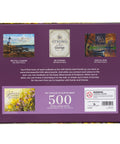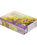 A meadow brimming with purple and yellow wildflowers forms a stunning visual for the 500-piece puzzle. The sentiment is beautifully depicted in shades of green and purple, while the Scripture reference, printed below it, complements it in a bright green tone.