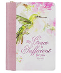 My Grace is Sufficient Hummingbird Pink Classic Journal with Zipper Closure - 2 Corinthians 12:9