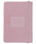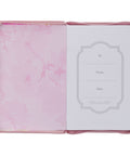 This flexcover journal offers 366 lined pages, providing ample space for journaling, note-taking, or jotting down daily reminders. It features a smooth-closing pink zipper closure with a silver metal zipper pull, ensuring the protection of both its pages and any loose notes. You will discover a comforting Scripture verse that offers comfort and inspiration on each page. To add a thoughtful touch, this journal comes with a presentation page, making it a perfect choice for a meaningful gift.