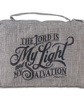 Fight fear with the words on the cover of the My Light and Salvation Gray Value Bible Cover—the perfect hardworking and durable cover for children or students.