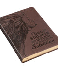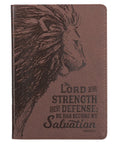 The My Strength and My Defense Walnut-Brown Faux Leather Classic Journal boldly declares the source of our strength: the lion of Judah! This brown flexcover journal is an excellent gift for men and women of all ages. The artistic design has universal appeal, and the quality is second to none. The lion elicits a sense of power, courage, boldness, and authority, kingly characteristics associated with a lion.