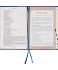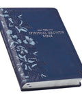 The Navy Blue Faux Leather Spiritual Growth Bible offers a fresh perspective on God's Word and will be a meaningful gift for a daughter, granddaughter, or niece baptized into the faith.