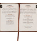 The devotional book's compact size makes it easy to slip into a backpack for devotions on the go, and a presentation page lets you personalize it. A brown satin ribbon marker is included to keep your place. The two-color pages are gilt-edged and match the gold foil accents in the cover perfectly.The One Minute with God for Men Daily Devotional makes an encouraging gift for students headed off to college, husbands on an anniversary, or fathers on Father's Day.
