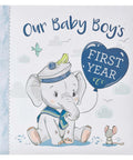 Our Baby Boy's First Year Memory Book is an adorable memory book offering creative ways for parents to capture the special memories in their baby boy’s first year.Our Baby Boy's First Year Memory Book captures the precious memories of baby’s first year. It offers space to record memorable moments and milestones like his first steps and his first tooth, scrapbooking pages for photographs, and a special keepsake pocket for baby’s hospital bracelet or a lock of hair from his first haircut. The pages carry quotes, poems, prayers and verses from Scripture - all conveying the beauty and design of bringing forth this new life.The padded front and back cover are accented with silver foil and the full-color pages are acid-free.