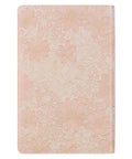The soft, pale pink faux leather cover is heat-debossed with a delicate floral design that wraps the woman's Bible in timeless beauty. Gold-foiled details are added to the centers of the flowers. A gold-foiled frame in the center displays the gold-foiled tile and translation name.