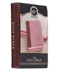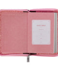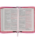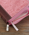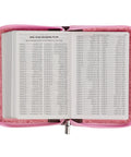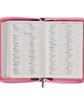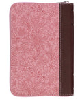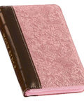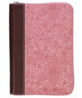 Pink and Saddle Tan Faux Leather Mini Pocket King James Version Bible with Zippered Closure
