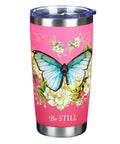 Pink Be Still Butterfly Stainless Steel Travel Tumbler - Psalm 46:10