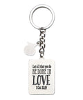 The back of the metal key ring is stamped with an encouraging verse from Scripture.
