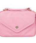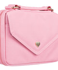Pink Faux Leather Fashion Bible Cover with Decorative Flap and Metal Heart Badge