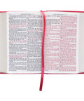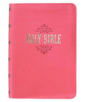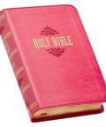 This lightweight pink Bible is perfect for packing for a mission trip or for keeping in your car's glove compartment. The Pink Faux Leather Large Print Compact King James Version Bible makes a fabulous gift for any lady, young or old, who loves a girly pink Bible.