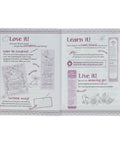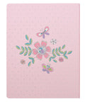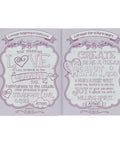 The sweet pink flexcover cover is bedazzled with silver-foiled hearts and multi-colored butterflies. The title is surrounded by bright flowers arranged in the shape of a heart. A white banner outlined in silver foil accents the title that is presented in silver-foiled and pink letters.