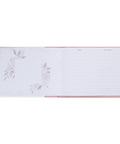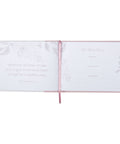 Inside, a monochromatic layout elegantly incorporates inspirational Scripture verses between the lined pages. To mark pages easily, a satin ribbon marker adds a touch of class. With 160 lined pages, there's ample space for guests to acknowledge their attendance and pen down special notes. For added convenience, this charming guest book is packaged in an acetate gift box, making it an ideal gift and ensuring its safe storage.