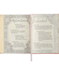 Gilt-edged pages coordinate superbly with the gold foil accents on the cover and the spine, and two satin ribbon page markers complement the pink faux leather cover.
