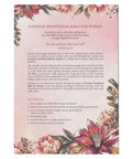 The devotional Bible for women comes with a handy ribbon marker, making it easy to track your progress. The text is printed in two colors, black and brown, providing a distinctive reading experience. Its single-column format and lay-flat binding ensure comfortable access to all text, and the text is set in an easy-to-read 10-point font. Additionally, there's a presentation page at the front of the Bible that can be personalized when given as a gift.