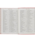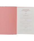 Delicate magnolia blossoms are heat-debossed in the lower left and upper right corners of the pink faux leather front cover. The designs frame the gold-foiled title that appears in the middle and is repeated on the spine.