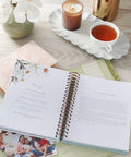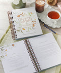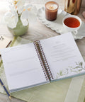 The hardcover, spiral-bound format is easy to write in. It features a beautiful cover design, complete with blossoming daisies illustrated in calming, watercolor hues. UV varnish catches the light and makes the title shine.
