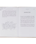 The taupe faux leather gift book features a heat-debossed hexagonal frame outlined in gold foil. Elegant heat-debossed flowers, accented in white, burst from behind the frame. Inside the frame, the gold-foiled title crowns the heat-debossed subtitle.