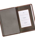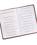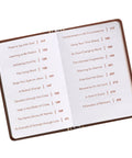 The saddle tan faux leather cover sports a walnut brown spine that is accented with gold-foiled vertical bands and a heat-debossed zig-zag design. The title is presented in gold-foiled letters and set in the middle of the front cover.