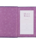 The fun design and beauty of the classic King James Version makes this Purple Faux Leather Compact King James Version Bible an ideal Bible for a young lady, and to this end, a presentation page is included for you to complete when you give this Bible in celebration of a special event.