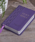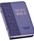 The unique pocket-size feature of the Purple Faux Leather King James Version Mini Pocket Bible makes it easy to slip into a purse or keep in the car. The Purple Faux Leather King James Version Mini Pocket Bible is a great gift for a mother or friend who prefers to read from an actual Bible while on the go, and the color makes it the perfect Easter gift.