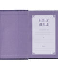 The rarity of the color purple in the biblical age gave it great value. The Purple Faux Leather King James Version Mini Pocket Bible also has great value, but for an entirely different reason—it is the Word of God produced in an ultra-portable pocket-size rendition wrapped in a beautiful lavender-hued jacket.