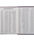 The handsome purple faux leather cover is embellished with a heat-debossed filigree design that sandwiches the title. The title is skillfully heat-debossed and gold-foiled on the front cover.