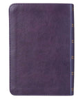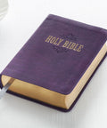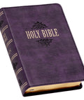 The Purple Faux Leather Large Print Compact King James Version Bible combines the size of a small Bible with the ease of a large print. Although the Bible is markedly smaller than a standard Bible, its 10-point text is slightly larger and is considered a large print for a compact-size Bible.