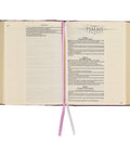 When you use the Purple Floral Faux Leather Hardcover King James Version Note-taking Bible, you can say goodbye to the days of trying to find the perfect journal for your morning devotions. With plenty of lined space, you can keep all your notes and reflections in one place, written out right next to God's Word.