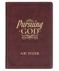 The Pursuing God Saddle Tan Faux Leather Devotional Large Print Edition is a compilation of 366 daily readings from the heart and mind of Dr. A.W. Tozer. The selections have been gleaned from his taped sermons, with additional excerpts from his published books and his incisive editorials. His helpful personal illustrations, testimonies, and spiritual concerns have been scattered throughout these pages, all glorifying the Person of Jesus Christ, our Savior and Lord. In this collection, Tozer calls readers to reflect on God's Word, consider who God is, and turn to Him in prayer.