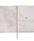 Gilt-edged pages complement the gold-foiled little, just like the brown satin ribbon marker complements the saddle tan faux leather cover. The interior pages continue the elegant design elements with brown and golden ecru lettering. At the front of the book, a presentation page decorated with a stunning mountain vista can be personalized when it is given as a gift.