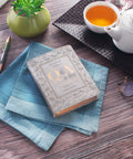 Its elegant taupe faux leather cover is adorned with scattered, heat-debossed fronds on both sides. The front cover boasts a gold-foiled frame, complemented by a heat-debossed arch design that highlights a sleek panel displaying the title. The title is presented in heat-debossed letters, further accentuated with a gold-foiled script.