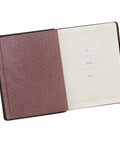 A brown satin ribbon marker and gilt-edged pages with rounded corners complete the elegant design.