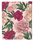 The hardcover Bible is wrapped in rose-pink faux leather, screen-printed with a gorgeous floral design. The title is accented with gold-foiled flourishes.
