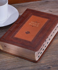 Saddle Tan and Butterscotch Faux Leather Giant Print Standard-size King James Version Bible with Thumb Indexing