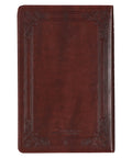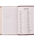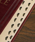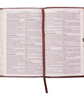 The stunning cover of the Saddle Tan Faux Leather Deluxe King James Version Gift Bible with Thumb Index with its classic design matches the classic King James Version text of the Bible beautifully.