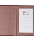 The Saddle Tan Faux Leather Deluxe King James Version Gift Bible with Thumb Index comes packaged in a gift box. This beautiful Classic King James Version Bible makes a thoughtful gift for a special birthday or a life event like a graduation or engagement.