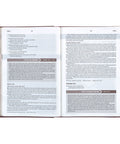 Within the devotional Bible, you'll find text printed in an easily readable 10-point type. The content is presented in two colors, black and brown, and displayed in a single-column format. This Bible features a lay-flat Smyth-sewn binding, allowing you to access all the text, and it includes a ribbon marker to keep track of your progress. Inscribe the presentation page in the front of the Bible to commemorate a special occasion or when you give it as a gift.