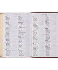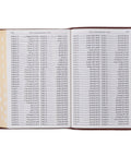 The giant print Bible opens flat, and inside you will find many user-friendly features that make reading from it a delight. Its double-column format, 14-point type, and reader-friendly subheadings make for effortless reading. Thumb indexing tabs allow the reader to locate books of the Bible quickly. The words of Christ are printed in red for easy reference, and a thematic Scripture verse finder helps to find specific passages quickly. A concordance, 8 full-color maps, and cross-referencing are added luxury features. A one-year reading plan is included to keep your daily reading on track.