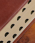 The flexible full grain leather cover with its sturdy topstitching along the edges has a supple feel, and from the first glance, the gilt-edged pages convey a sense of style. The title is gold-foiled and appears on the spine.